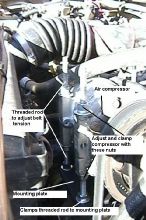 The most important part is making sure that the pulleys; alternator, idle and air compressor are square with the belt and even with the other pulleys. |