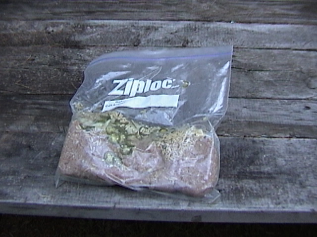 In this article I'm going to show you how to make a no fuss meatloaf. The reason I call this no fuss is we're going to take a one gallon Ziploc, this bag will be both our mixing bowl and our cooking bag. It's important to get the right kind of baggy, you need to use a heavy high-quality ziplock type of bag. If you use a cheap bag you'll end up with juices all over your engine! While in the short run this may smell good, you may be out camping, and some morning wake up to find that some mice really enjoyed your electric wires sautéed in cooking juice. Or even more fun to wake up to, the noise of a bear ripping stuff out of your engine. One of the major manufacturers of zip-able Freezer bags has a "Two ply freezer bag". I found this bag to be unsuitable as it tends to melt while cooking on the engine. I made my meatloaf using ground turkey. Let's start with a list of ingredients, feel free to make any kind of substitutions or additions according to your taste. |