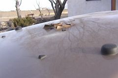 We stopped at a NM tourist information @ exit 20, Lordsburg looking for a New Mexico travel guide with town info and history (Texas has a great travel guide). I was inside talking with the attendant when he asked me “Is your jeep supposed to be smoking?” I looked out and it was smoking, so I ran out and cracked the hood open… I saw FLAMES!! I got my extinguisher out cracked the hood and sprayed!!!! The fire was out, open the hood and survey the damage. While I was looking at it I could see glowing inside my PCV hose. So I ripped it out. As I watched, the air intake crossover tube melted and drooled over the injectors! Even though the fire was out plastic continued to melt. |