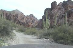 In short order you are at the mining camp and headed out. Since we are headed back to Las Cruces we will go out through Box Canyon yet again and on to Florence (Again!). We will take Rt 89 to Tucson where we will pick up I 10. In Florence we stop at Burger King for a burger and I remove the front drive shaft (I still get a vibration from it) I notice that even though I had the U-joint replaced in Tennessee it is stiff. We get to I 10 with time to spare |
